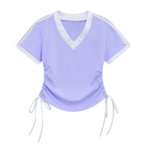 Purple Drawstring Waist Versatile T-Shirt