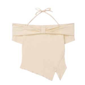 Off-The-Shoulder Apricot Halter Neck T-Shirt
