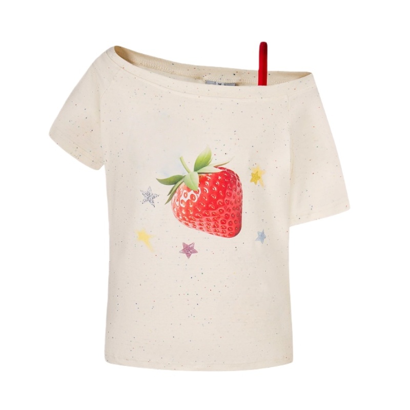 Stunning Printed Off-Shoulder Apricot T-Shirt